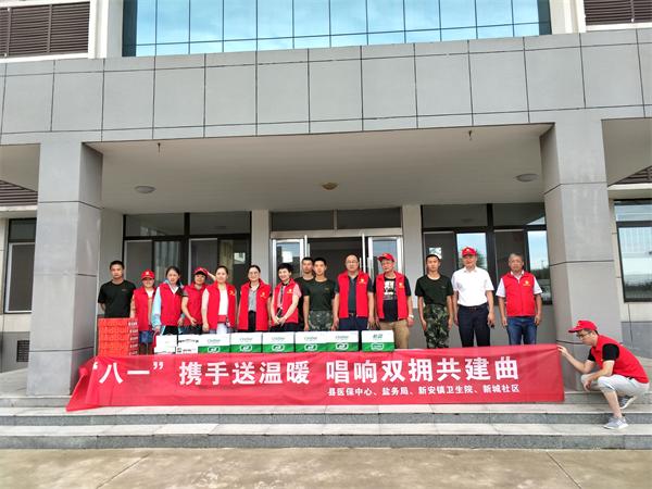 “八一”建军节到来之际,7月27日,来安县局志愿者在新城社区的组织领导下,顶着炎炎烈日到武警支队看望慰问武警官兵,为他们送去节日的祝福及防暑饮品,感谢他们长期以来对维护社会稳定、守卫人民的幸福安宁,为我县社会经济等各项事业发展所做的卓越贡献,受到官兵的热烈欢迎及深深的感谢。