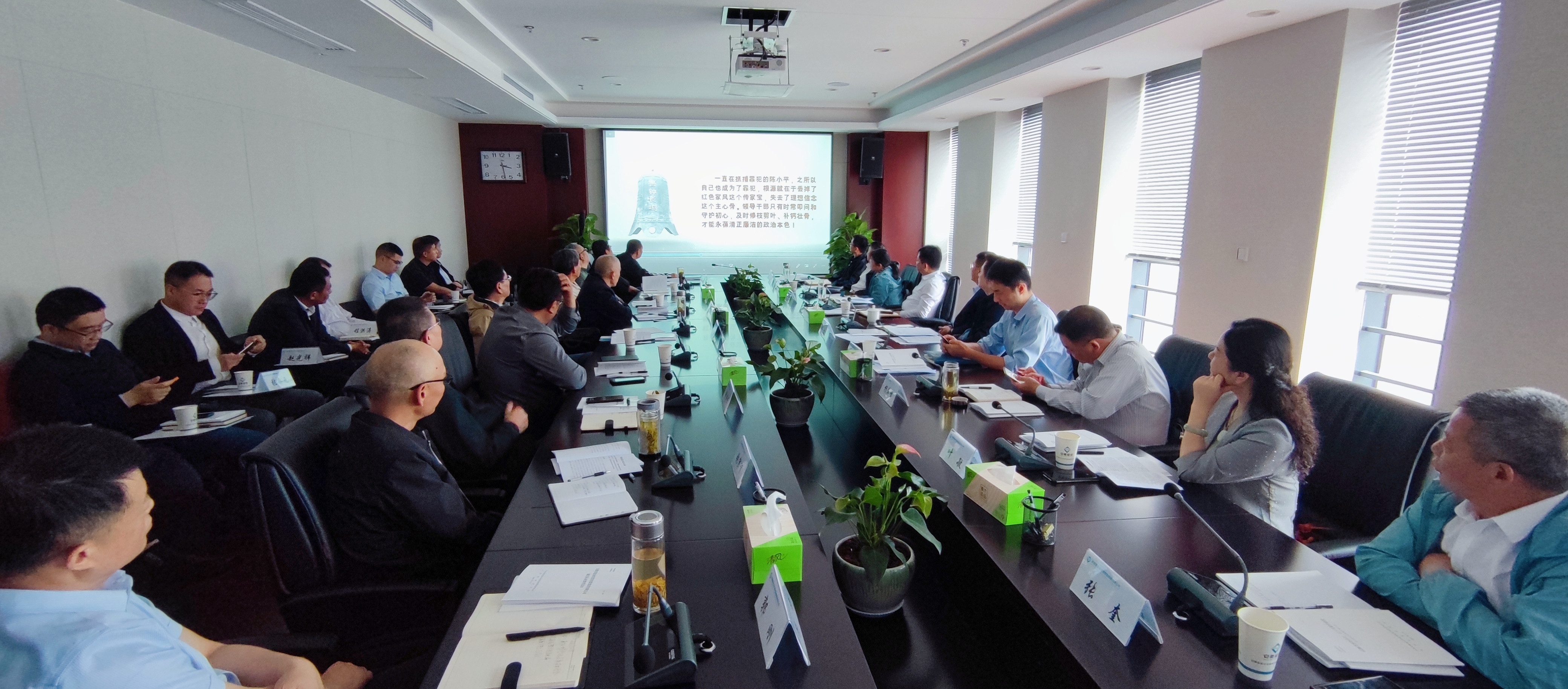 5月24日,星辉官方网站公司召开新任中层管理人员集体廉洁谈话会,星辉官方网站公司党委委员、纪委书记缪磊出席会议并讲话。近一年来新提拔、重用以及引进的中层管理人员共31人参加会议。
