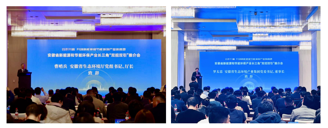 曹哨兵在致辞时指出,近年来,安徽省委、省政府紧紧围绕打造新兴产业聚集地的目标,大力推动十大新兴产业聚链成群、集群成势,建立了十大新兴产业省级专班推进机制,坚持把“双招双引”作为产业发展新打法,在更大市场空间集聚资源。安徽省生态环境厅作为新能源和节能环保产业专班牵头单位,聚焦新能源、高效节能、先进环保、资源循环利用、碳中和五大领域,不断优化营商环境、完善涉企服务、加强要素保障,产业发展势头强劲。