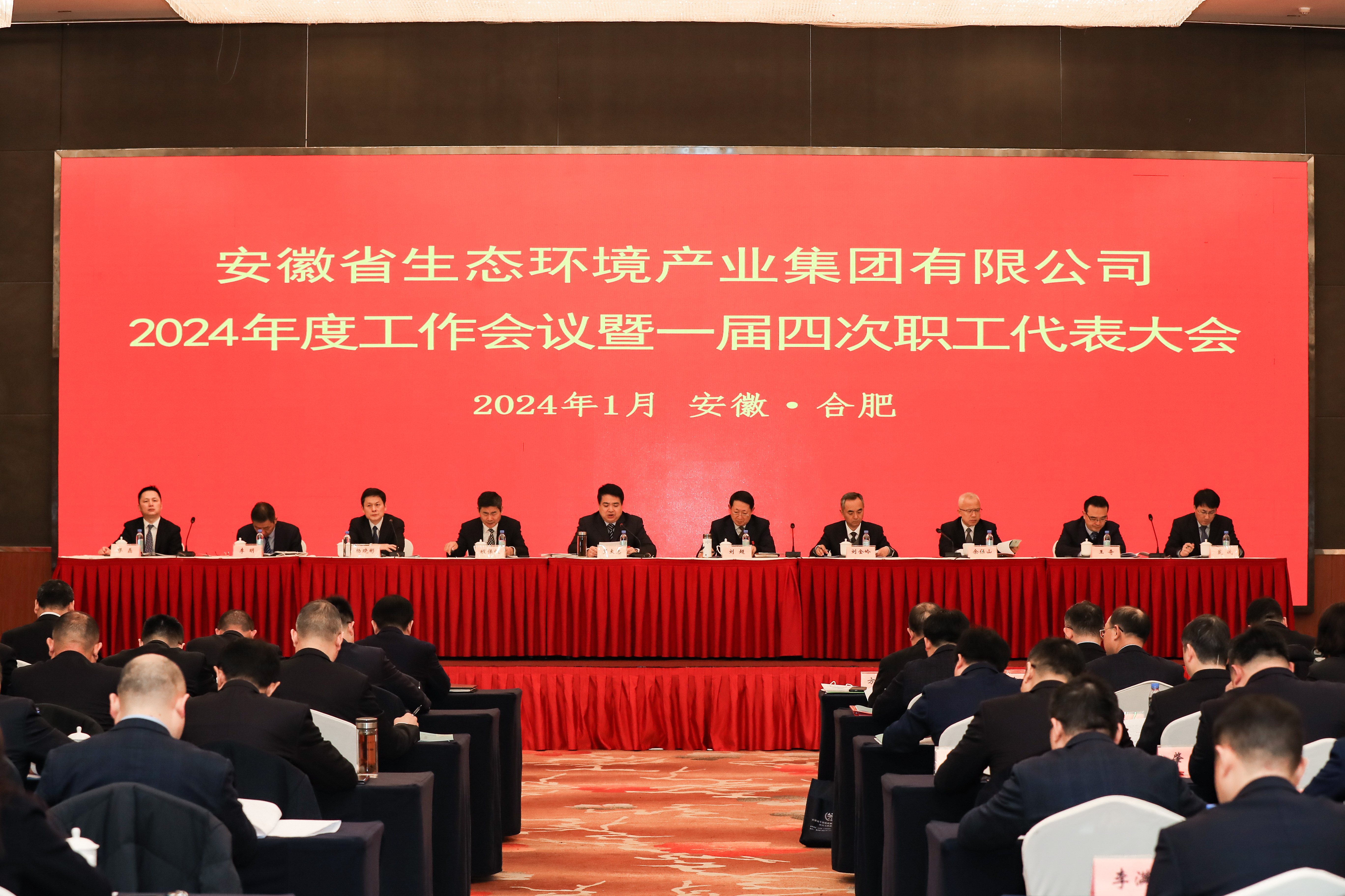 1月31日,省生态环境星辉官方网站2024年度工作会议暨一届四次职工代表大会在合肥召开。会议以习近平新时代中国特色社会主义思想为指导,深入贯彻落实党的二十大、二十届二中全会和中央、省委经济工作会议精神以及省属企业和市国资委负责人会议精神,总结工作,分析形势,部署任务。星辉官方网站公司党委书记、董事长罗太忠作题为《坚决扛好新使命担当 全面推动高质量发展 为加快建设山水秀美的生态强省贡献更多力量》工作报告。