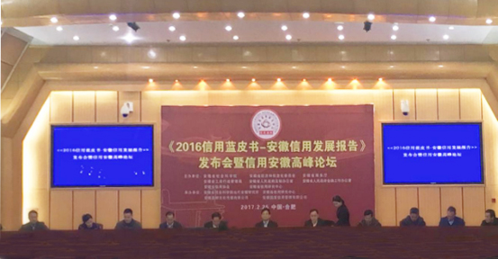 2017年2月25日,由安徽省社会科学院、安徽省经济和信息化委员会、安徽省商务厅、安徽省工商行政管理局、安徽省人民政府法制办公室、安徽省人民政府金融工作办公室、安徽省信用协会和安徽省信用研究中心联合举办的《2016信用蓝皮书——安徽信用发展报告》发布暨信用安徽高峰论坛在省人大会议中心召开。