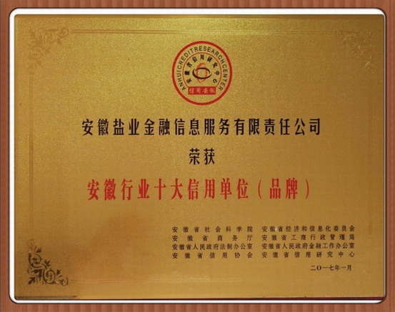 徽盐金融被评为“安徽行业十大信用单位”