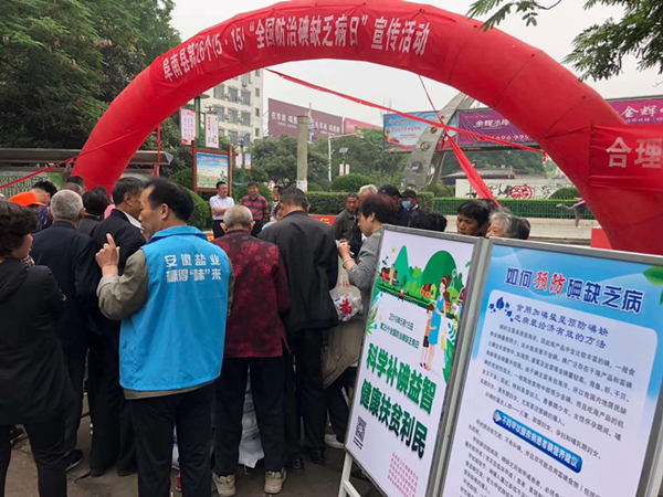 (图为巢湖市盐业公司和市吸血虫病防治站联合开展的515“众志成城战疫情,科学补碘保健康”碘缺乏病宣传活动)