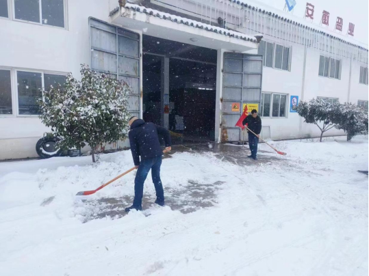 淮南盐业公司职工清扫仓库前积雪,保障运送畅通。