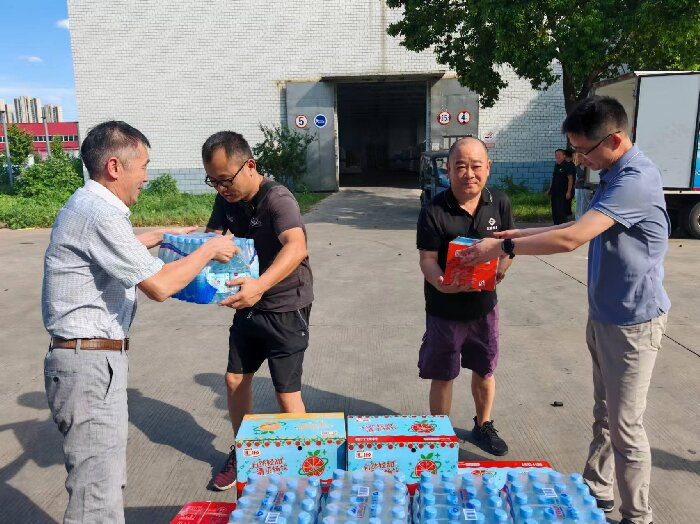 公司工会为一线职工们送上汇源果汁、矿泉水等防暑物品,叮嘱职工高温天气时做好防暑措施,合理安排工作时间,加强防暑降温安全知识宣传,有序开展经营工作,鼓励大家坚定信心,继续发扬拼搏精神,立足岗位奉献力量。